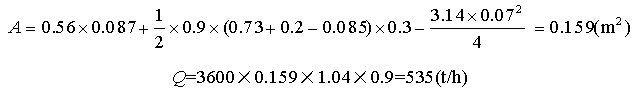 當(dāng)給定工作面刮板輸送機(jī)的生產(chǎn)能力,驗(yàn)算溜槽最大物料斷面面積A':